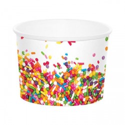 Coppette in cartoncino, perfette per servire gelato, caramelle, frutta a pezzettini e tanto altro. Abbinale ad altri articoli del coordinato Confetti, assolutamente delizioso, pieno di confetti e colori per una festa davvero dolcissima! Dimensioni: 8,9 x 6,3 cm / 266 ml Pezzi: 6