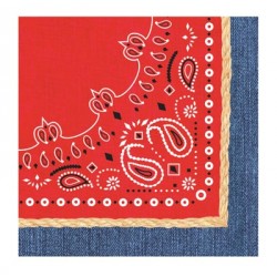 Tovaglioli in carta Bandanarama per festa a tema Western. Abbina agli altri articoli del coordinato, accessori e decorazioni country. Dimensioni: 33 x 33 cm Pezzi: 16