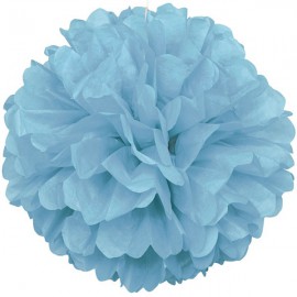 Pon pon in carta velina colore azzurrp, per dare un tocco speciale alla decorazione della festa. Possono essere appesi al soffitto oppure collocati sul tavolo. Il pon pon è inviato piatto ed è facile da assemblare, basta aprire la sfera e separare gli strati di carta. Dimensioni: 35 cm diametro Pezzi: 1