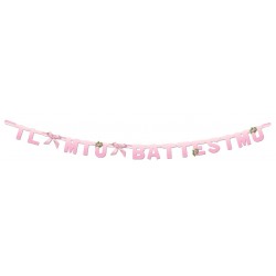 Festone in cartoncino snodabile con la scritta "Il mio battesimo" colore rosa. Dimensioni: 2,8 m x 18 cm Pezzi: 1