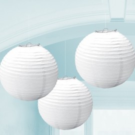 Lanterne rotonde in carta colore bianco. Ogni confezione contiene 3 lanterne di 24cm in diametro.