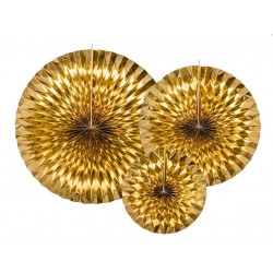 Stupenda decorazione per le feste, questo set di pendenti rosette in carta oro foil è perfetto da appendere nella parete dietro il tavolo o al soffitto. Ogni confezione contiene 3 pendenti di dimensioni diverse. Pezzi: 3 Dimensioni: 40, 32 e 23 cm