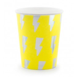 Bicchieri in carta giallo neon decorato con fulmini iridescenti, stupendo per feste a tema Supereroi! Abbinali agli altri articoli del coordinato Supereroi per una decorazione completa. Dimensioni: 266 ml Pezzi: 6