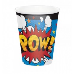 Bicchieri in carta per feste a tema Supereroi, da abbinare agli altri articoli del coordinato Supereroi per una decorazione completa. Dimensioni: 266 ml Pezzi: 8