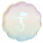 Questo stupendo coordinato ha nei suoi articoli una meravigliosa sirena iridescente in foil in mezzo a delicati colori pastello. Un coordinato originale, elegante e sorprendente per una festa a tema Sirena o Mare. Abbina gli articoli del coordinato a decorazioni in colori pastello.