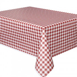 Tovaglia in plastica leggera stampata a quadretti rosso e bianco. Perfeta per pic nic, feste di compleanno a tema fattoria. Dimensioni: 137 x 213cm Pezzi: 1