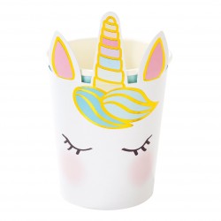 Questi bicchieri, stupendi per le feste a tema Unicorno, sono realizzati in carta e hanno la forma del viso di un unicorno con dettagli in oro foil. Abbinali agli altri articoli del coordinato Unicorn Face. Dimensioni: 250 ml Pezzi: 8