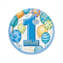 Piattini in carta del coordinato Palloncini Blu per festa primo compleanno bambino. Abbina algi altri articoli del coordinato, posate e palloncini in tinta unita azzurra per una decorazione completa! Dimensioni: 17cm Pezzi: 8