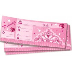 Usa questi carinissimi biglietti di invito per informare data, ora e locale della festa e già preparare le bambine alla festa delle principesse! Abbina agli altri articoli del coordinato. Pezzi: 8