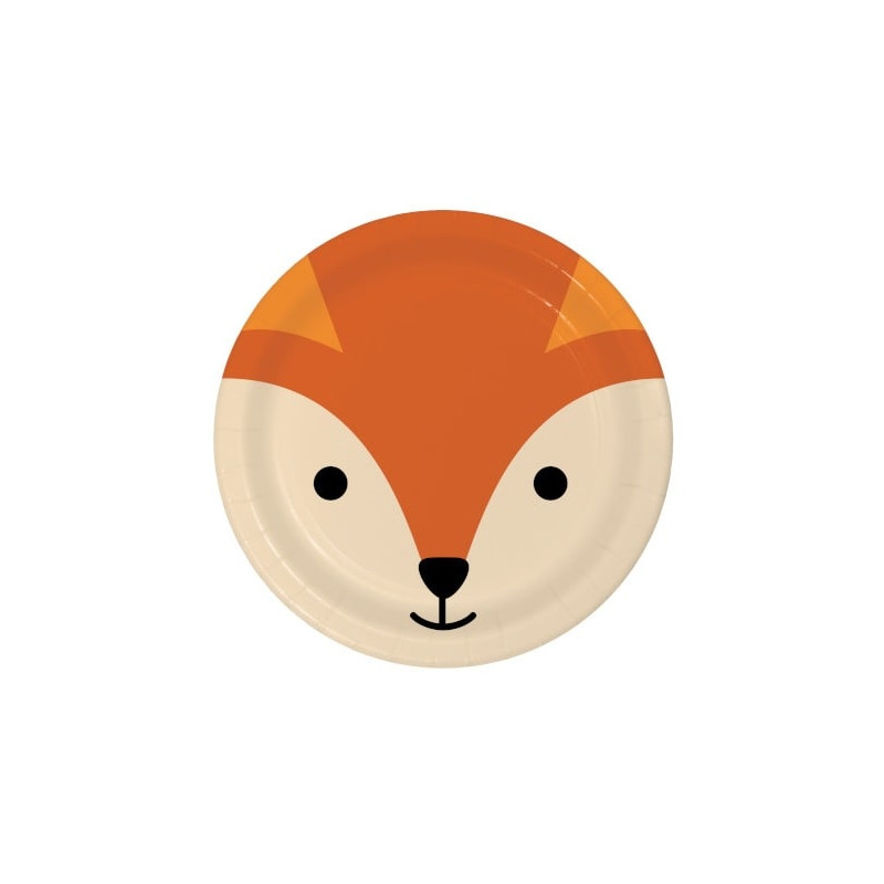Questi stupendi piattini in carta decorati con il viso di una volpe sono semplicemente adorabili per le feste compleanno a tema bosco!