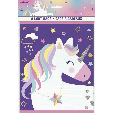 Borsine party Unicorn Rainbow, realizzate in plastica, perfette per i regalini fine festa. Abbinale agli altri articoli del coordinato per una festa completa a tema Unicorno!