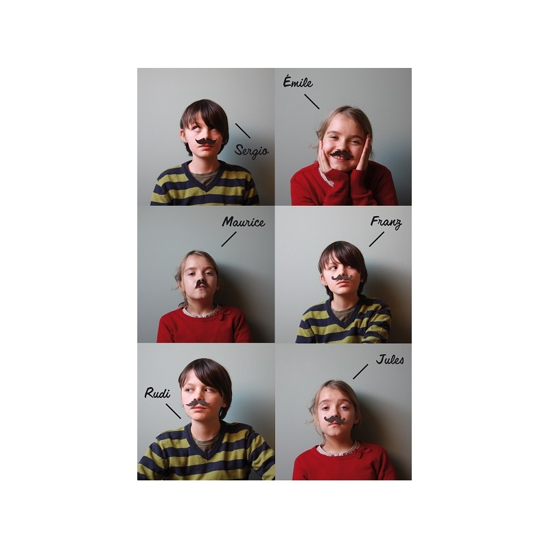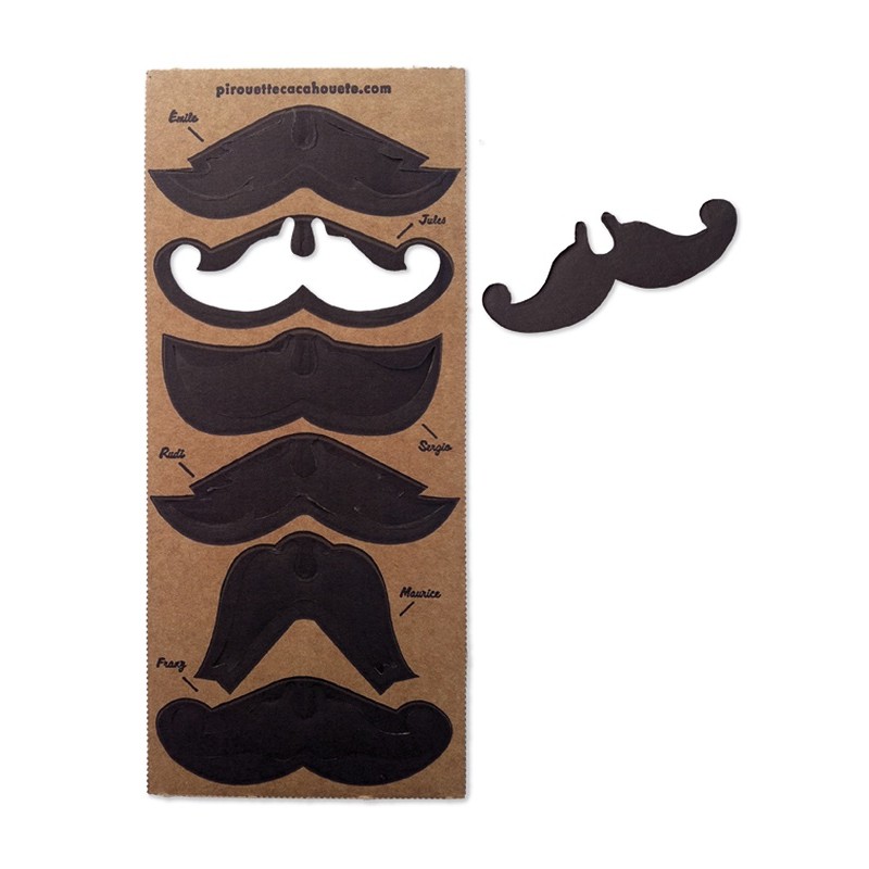 Set di 6 baffi in modelli diversi, da colorare o utilizzare dalla parte nera. Un accessorio divertente, che stimola l'immaginazione. Adatto sia a bambini che adulti.