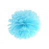 Pon pon in carta velina colore azzurrp, per dare un tocco speciale alla decorazione della festa. Possono essere appesi al soffitto oppure collocati sul tavolo. Il pon pon è inviato piatto ed è facile da assemblare, basta aprire la sfera e separare gli strati di carta.