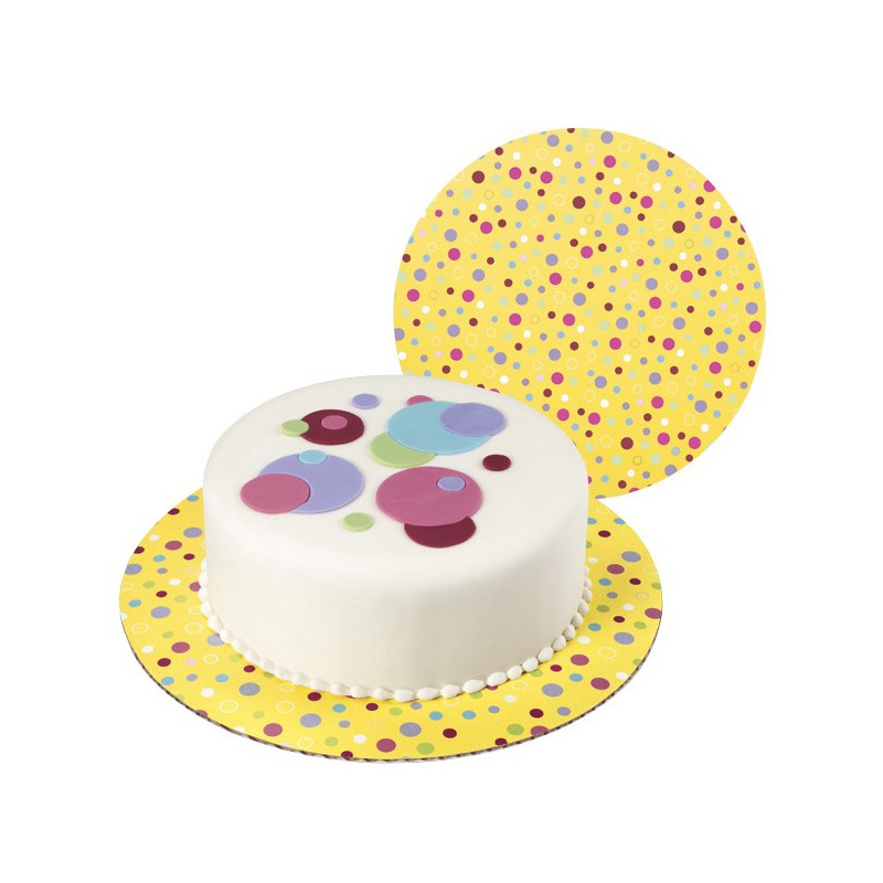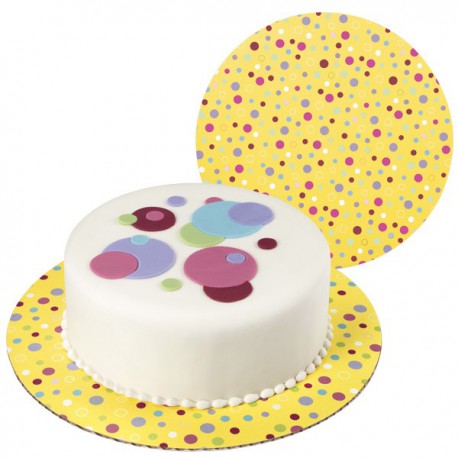 Piatti in cartoncino giallo a pois per servire torte fino a 25 cm diametro. Realizzati in cartone resistente di alta qualità. Abbina ai pirottini per cupcakes Sweet Dots per una tavola stupenda!