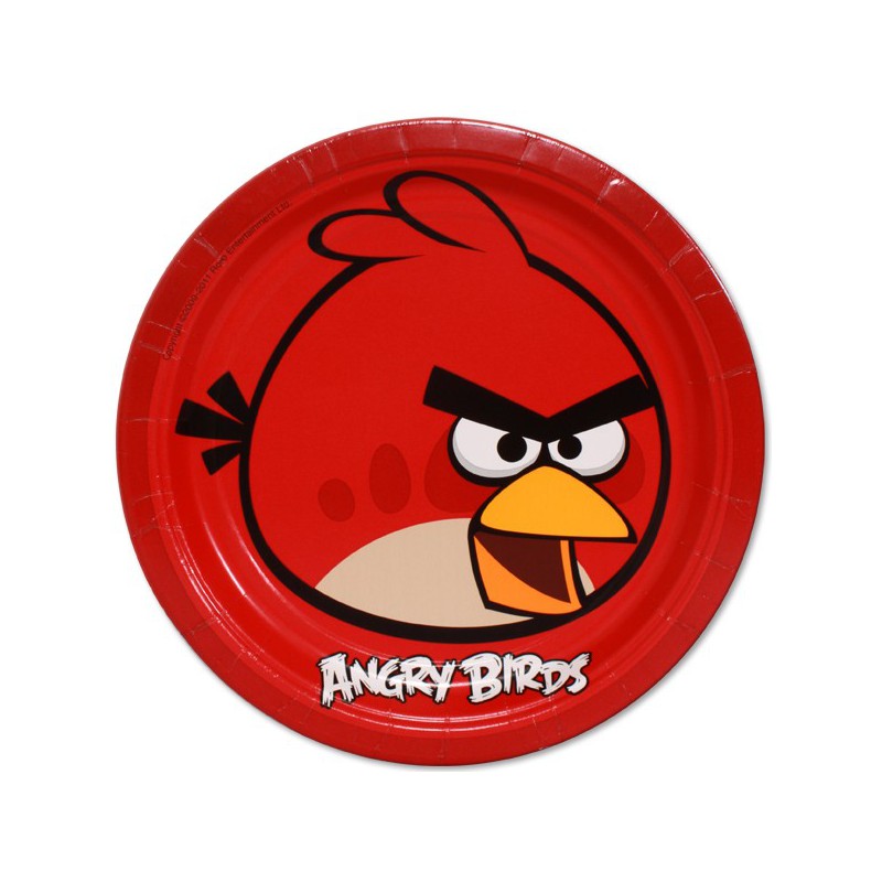 Piatti in carta del Coordinato Angry Birds. Abbina agli altri articoli degli Angry Birds, posate e palloncini nei colori blu, verde, rosso e giallo per una decorazione perfetta!