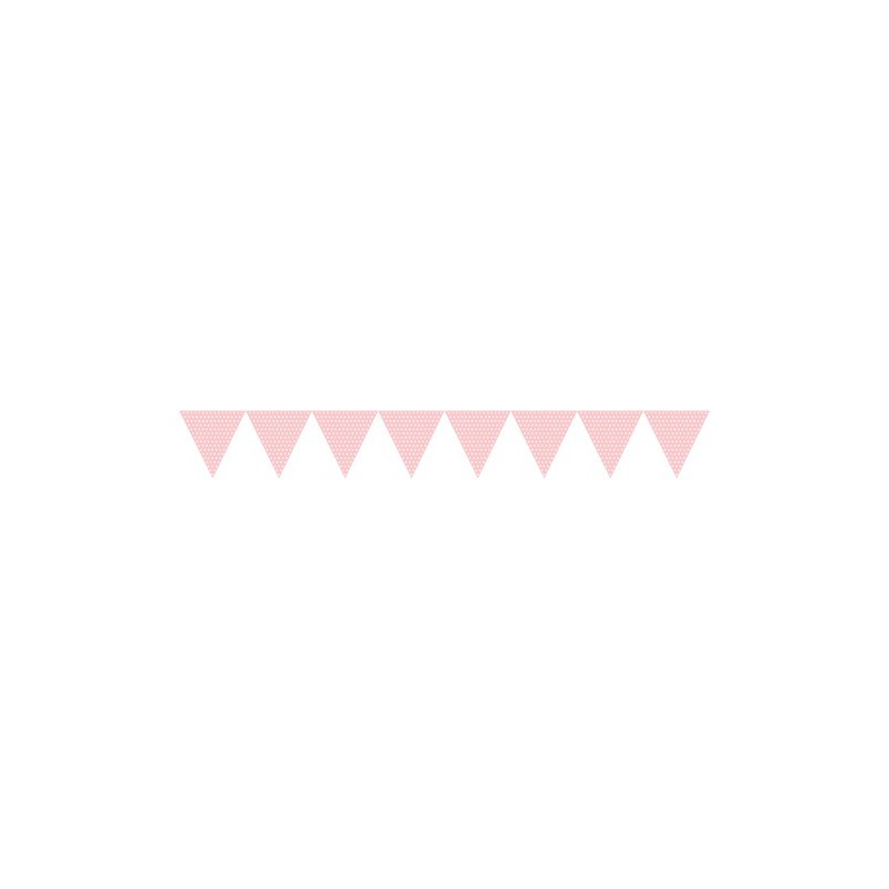 Questo adorabile festone di bandierine triangolari in carta rosa pastello e pois bianchi darà un tocco di dolcezza ad ogni baby shower o festa di compleanno delle bambine. Puoi anche personalizzarlo con il nome della festeggiata incollando sulle bandierine le lettere in carta che potrai preparare nel colore che vuoi!