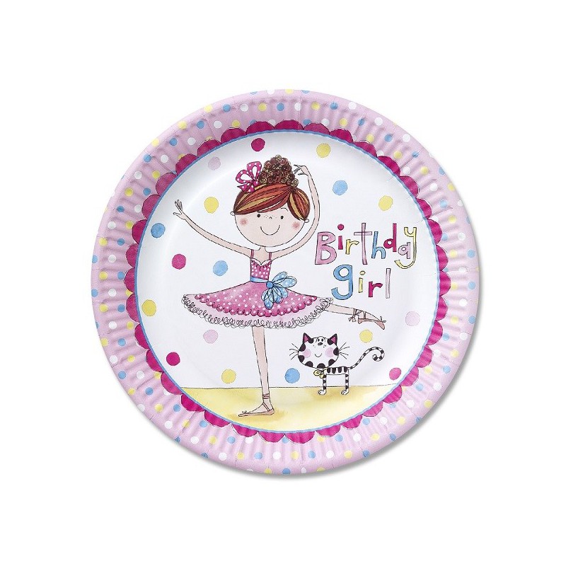 Una carinissima ballerina e il suo gattino decorano questi piatti in carta del coordinato Birthday Ballerina della designer Rachel Ellen, perfetto per feste di compleanno originali a tema ballerina. Abbina agli altri articoli del coordinato per una decorazione stupenda!