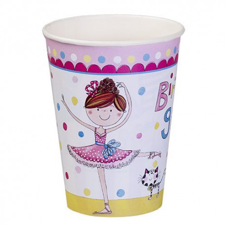 Una carinissima ballerina e il suo gattino decorano questi bicchieri in carta del coordinato Birthday Ballerina della designer Rachel Ellen, perfetto per feste di compleanno originali a tema ballerina. Abbina agli altri articoli del coordinato per una decorazione stupenda!