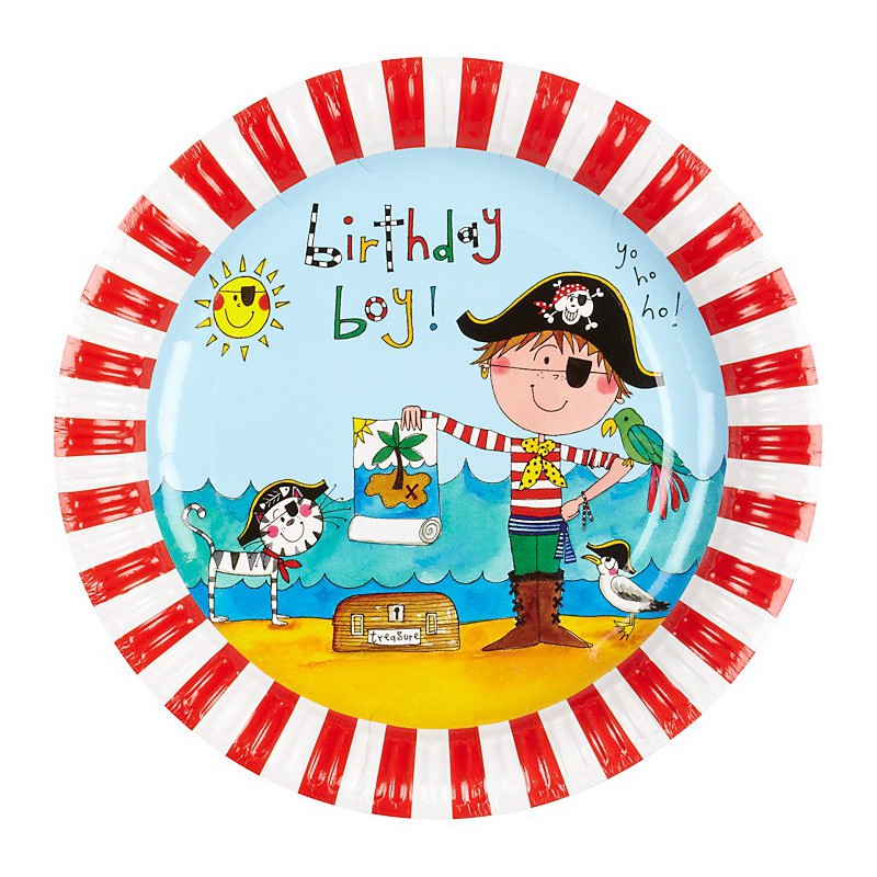 Un pirata adorabile e i suoi amici sono il tema di questi carinissimi piatti in carta del coordinato Birthday Pirate della designer Rachel Ellen, perfetto per le feste di compleanno dei bambini più piccoli. Abbina agli altri articoli del coordinato e accessori in tinta unita rosso e azzurro per una decorazione stupenda!