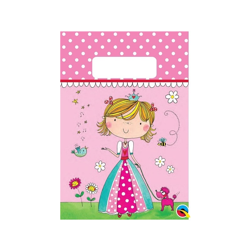 Un'adorabile principessa con il suo cagnolino decora queste borsine party in carta del coordinato Birthday Princess della designer Rachel Ellen, perfetto per feste di compleanno originali a tema principessa. Abbina agli altri articoli del coordinato per una decorazione stupenda!