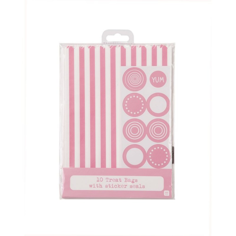 Sacchetti in carta con adesivi assortiti del dolcissimo coordinato Pink n' Mix a righe rosa e bianca. Riempile di pop corn e dolcetti per decorare il tavolo oppure di regalini per le invitate alla fine della festa. Perfetto per le sweet tables!