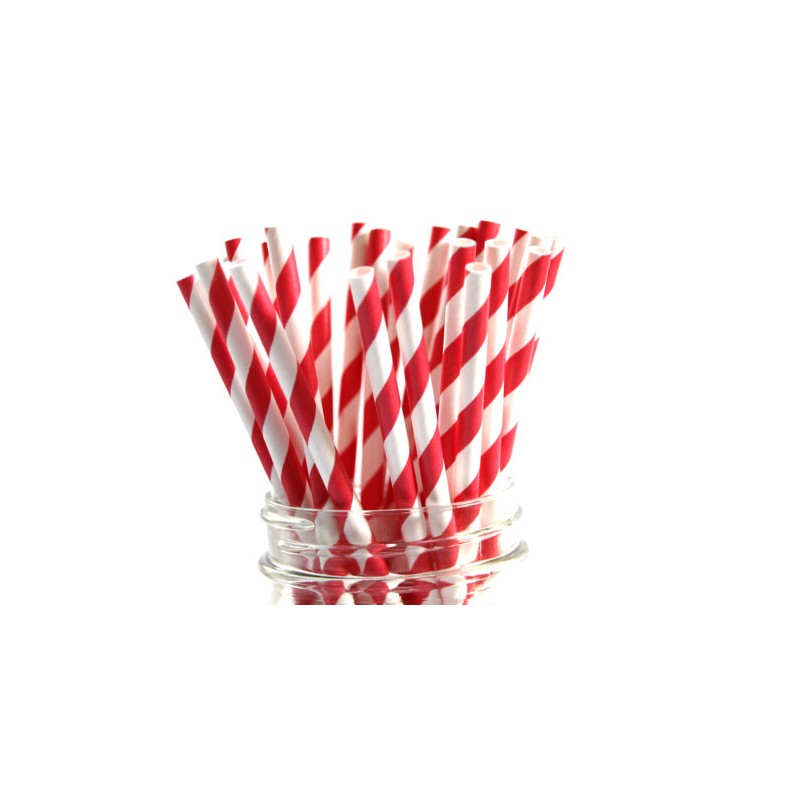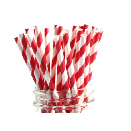 Cannucce in carta a righe rosso e bianco, per rendere davvero speciale la decorazione della tavola per le feste di compleanno. Abbina agli altri articoli del coordinato rosso!