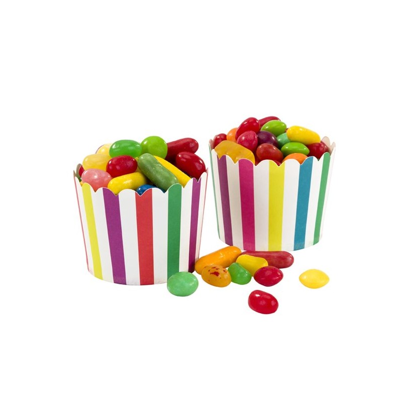 Coppette in carta da forno a multicolorate, possono essere utilizzate per servire caramelle, confetti, dolcetti oppure come pirottini per cupcakes.