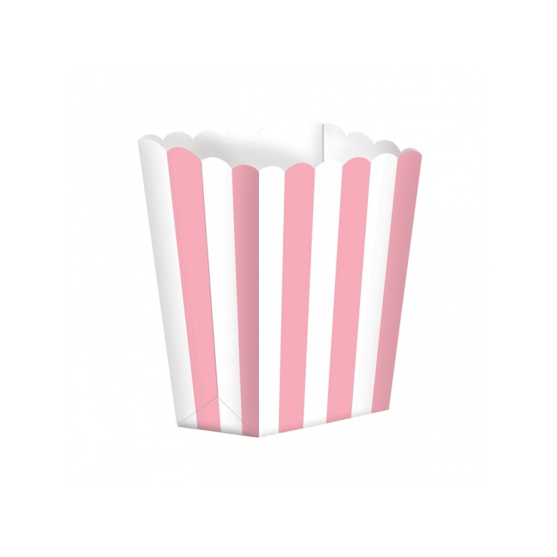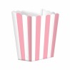 Treat boxes in cartoncino rosa a righe bianco, per decorare la tavola e servire pop corn o dolcetti nelle feste compleanno o qualsiasi altra occasione speciale. Abbinali a altri articoli rosa e crea il tuo coordinato!