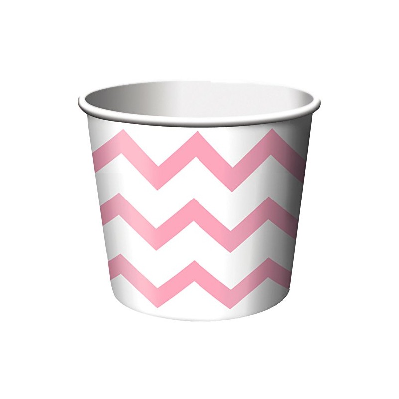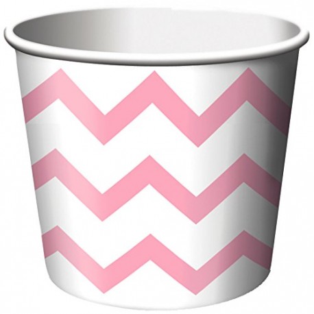 Coppette in carta con stampa chevron rosa, perfetta per servire gelato o dolcetti. Abbina agli altri articoli del coordinato tinta unita rosa!