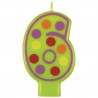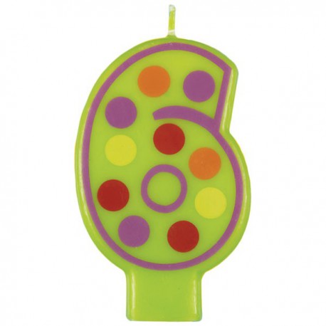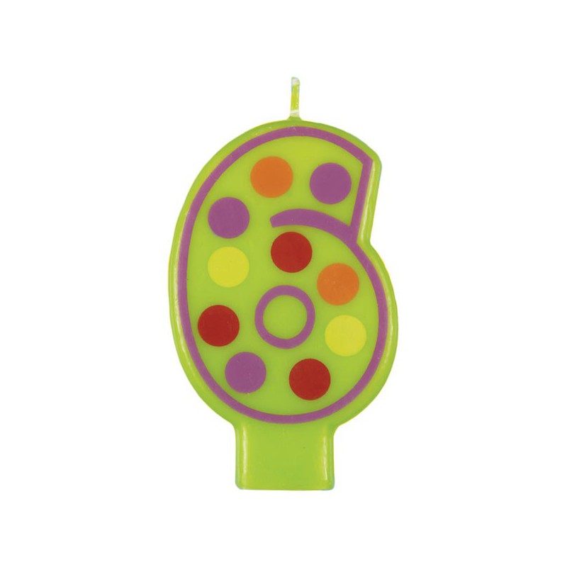 Una festa di colore, questa candelina numerale a pois 6 fa stupenda anche la più semplice torta di compleanno!