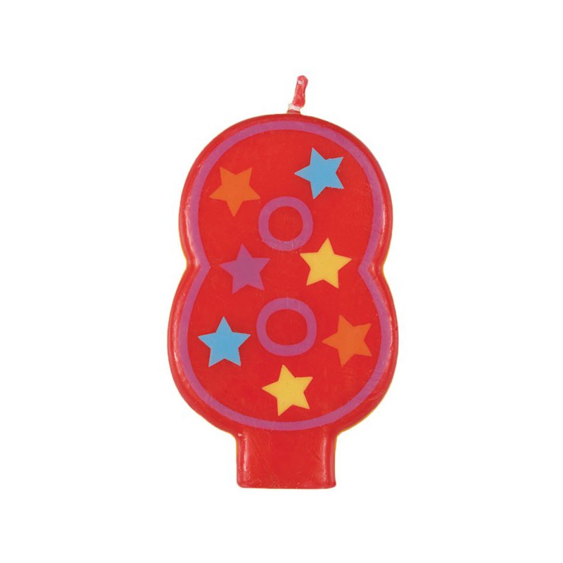 Una festa di colore, questa candelina numerale a stelle 8 fa stupenda anche la più semplice torta di compleanno!