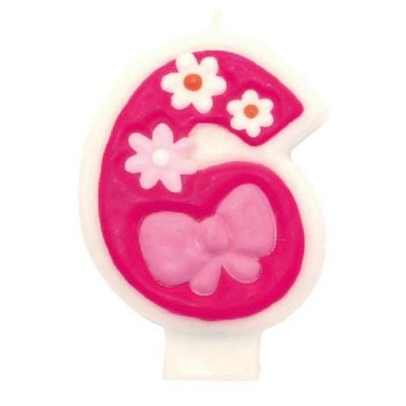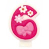 Bellissima candelina in cera in forma di numero 6 decorato con fiorellini. Perfetta per decorare la torta del compleanno di 6 anni delle bambine!