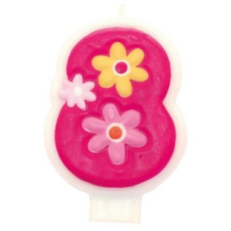 Bellissima candelina in cera in forma di numero 8 decorato con fiorellini. Perfetta per decorare la torta del compleanno di 8 anni delle bambine!