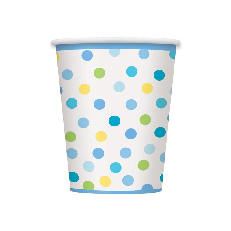 Bicchieri in carta del coordinato Cicogna Azzurro per feste Baby Shower. Abbina agli altri articoli del coordinato!