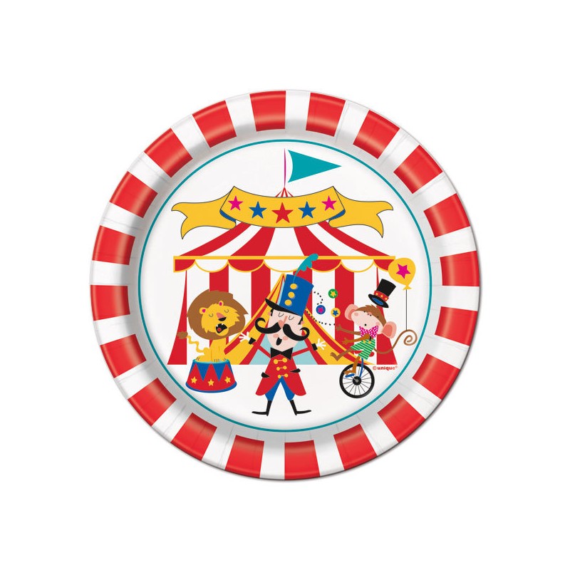 Piattini in carta del Coordinato Circus Carnival. Abbinali agli altri articoli del coordinato per una decorazione completa!