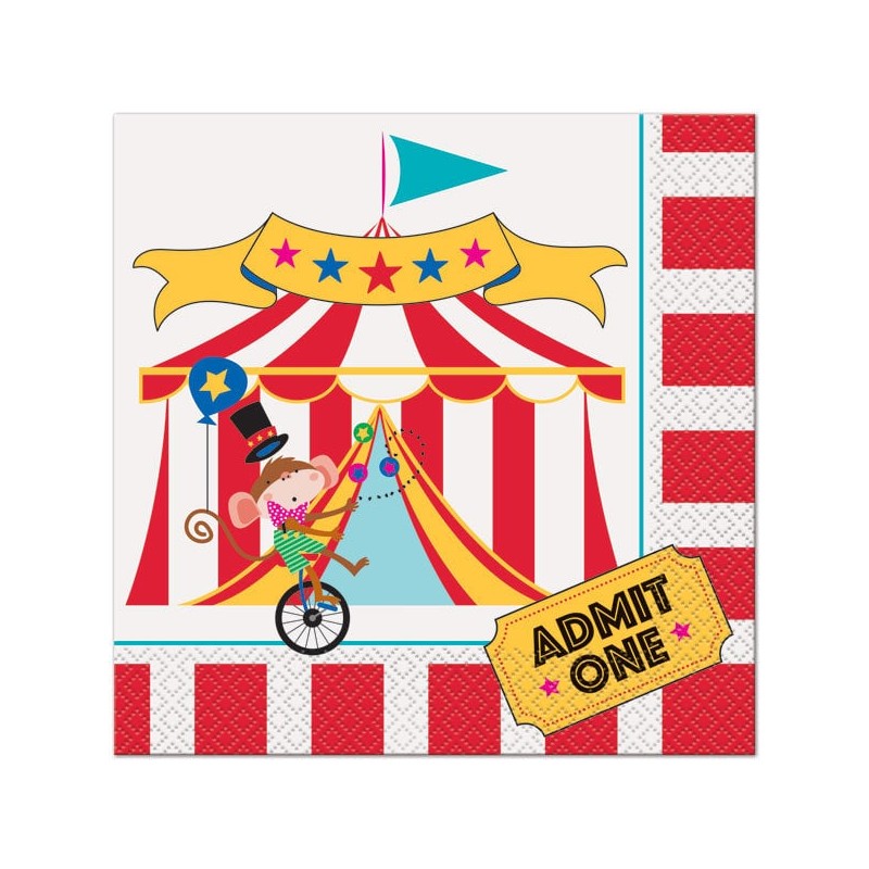Tovaglioli in carta del Coordinato Circus Carnival. Abbinali agli altri articoli del coordinato per una decorazione completa!