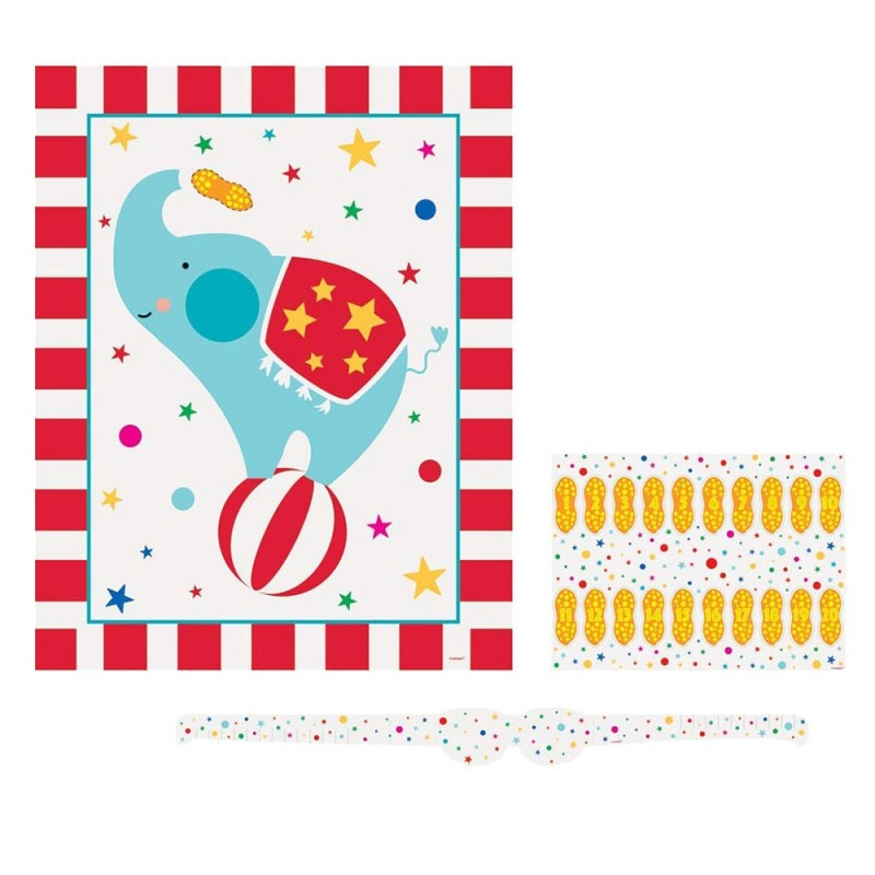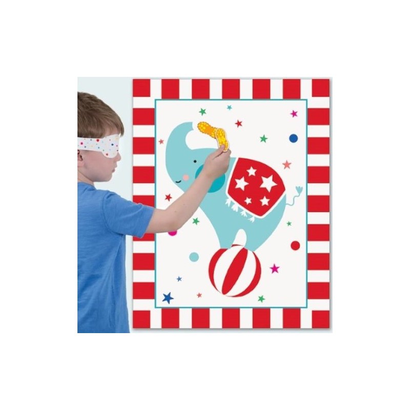 Questo gioco da appendere sulla parete o porta, oltre a decorare la stanza della festa, è un'ottima idea per divertire i bimbi e farli giocare insieme durante la festa a tema Circo! Chi riesce ad incollare la nocciolina più vicino al suo posto vince!