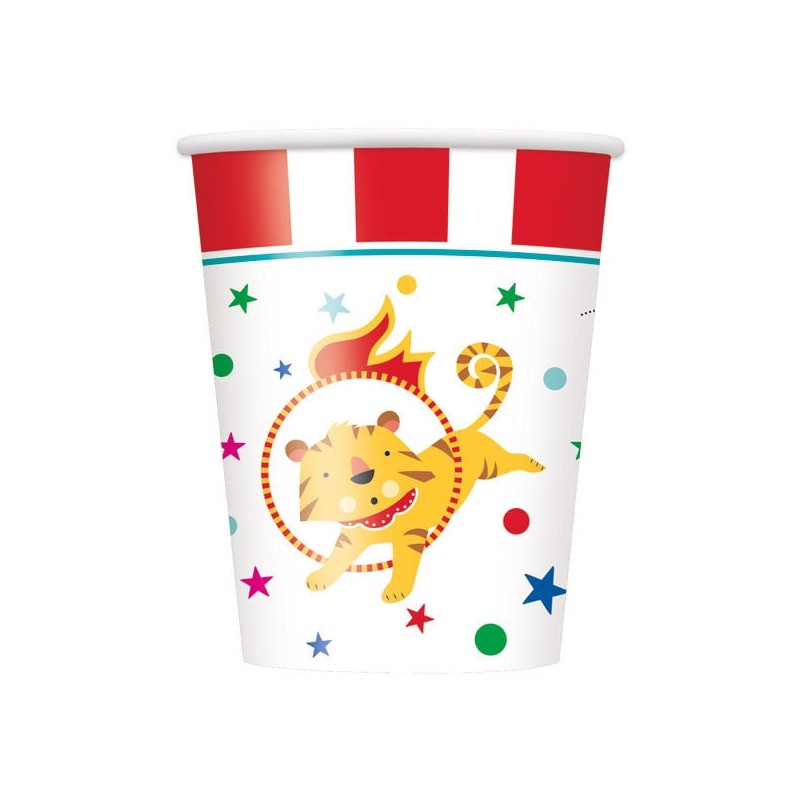 Bicchieri in carta del Coordinato Circus Carnival. Abbinali agli altri articoli del coordinato per una decorazione completa!