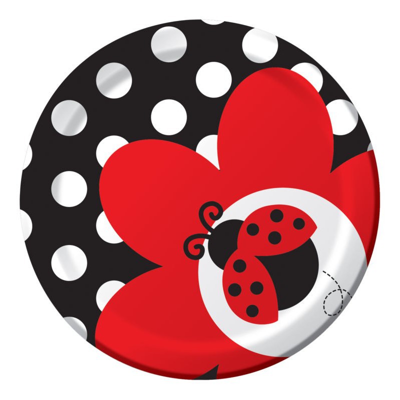 Questi piattini in carta del bellissimo coordinato Coccinelle sono perfetti per decorare la tavola delle feste di compleanno o baby shower a tema Coccinelle!