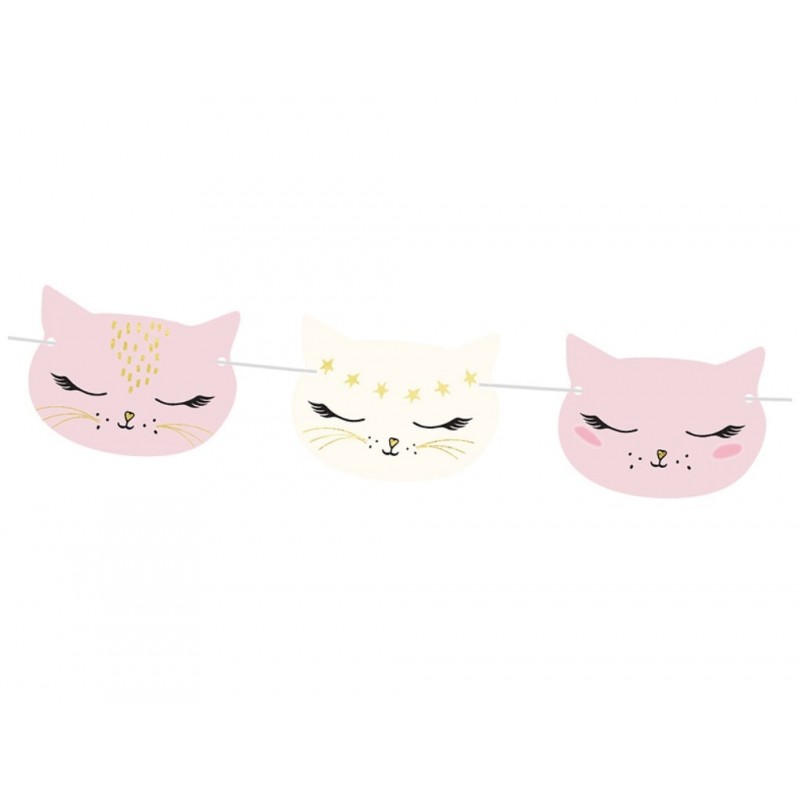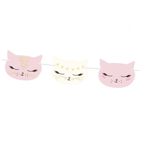 Questa adorabile ghirlanda è formata da 8 gattini diversi in cartoncino nei colori rosa, crema e oro. Il set contiene 3 m di nastro dorato ed è facilissimo da assemblare. Abbinala agli altri articoli del coordinato Gattini per una decorazione stupenda!