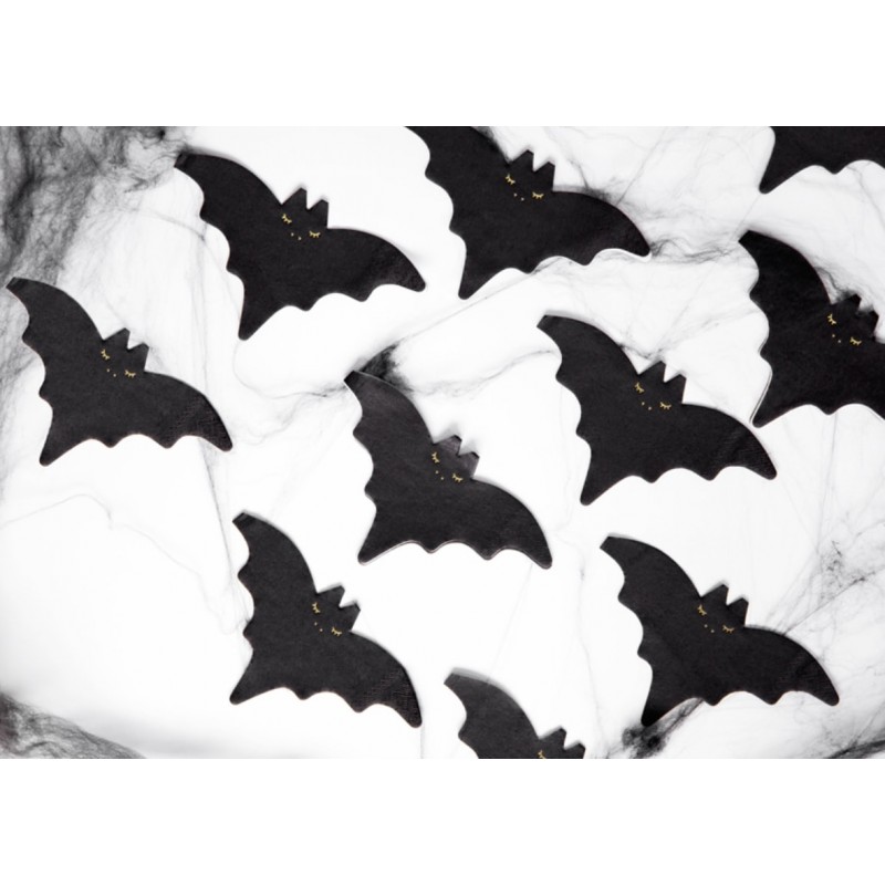 Questi tovaglioli in carta nera a forma di pipistrello decorati in oro foil sono stupendi per dare un tocco originale a qualsiasi festa Halloween! I bambini saranno stupiti! Abbinali ad altri articoli Halloween per una decorazione completa!