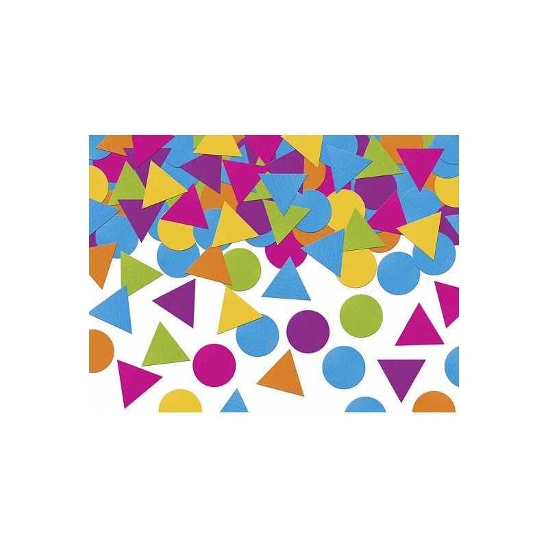 Coriandoli in carta multicolore nei formati tondi e triangolare, perfetti per completare la decorazione del tavolo della festa! Cospargili preferibilmente sopra una tovaglia in tinta unita per un'esplosione di colori!