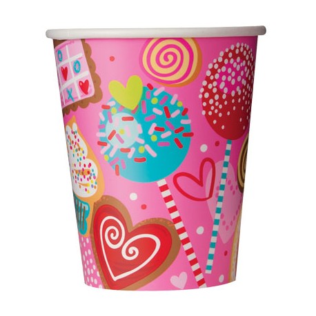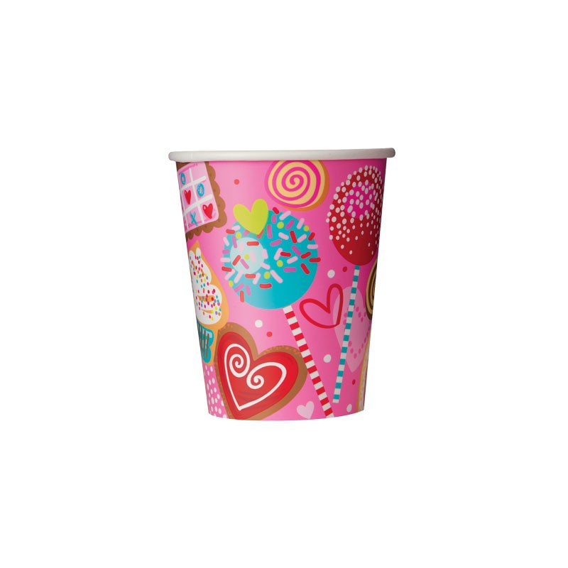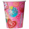 Bicchieri in carta del coordinato Cuoricini per festa compleanno bambina.