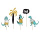 Set di Toppers assortiti del coordinato Dino Party "Grrrrr", decorazione divertente e fantasticamente veloce per la torta, i cupcake e tutto il buffet della festa a tema Dinosauri! Realizzate in carta e stecchini in legno.
