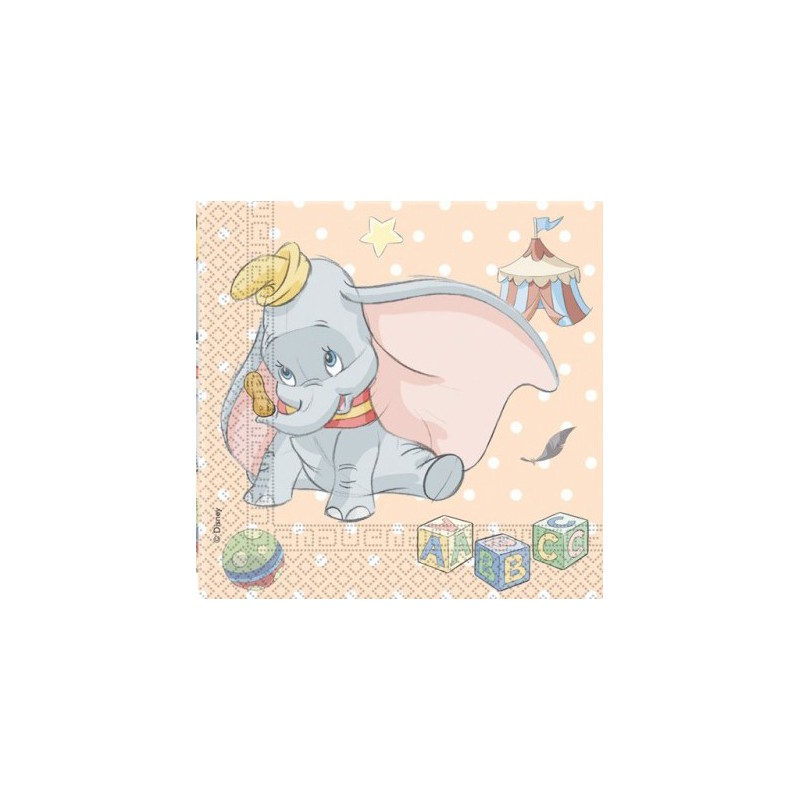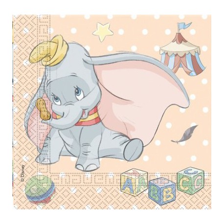 Tovaglioli del Coordinato Dumbo. Abbina agli altri articoli di Dumbo, posate e palloncini nei colori lilla, verde o azzurro per una decorazione perfetta!