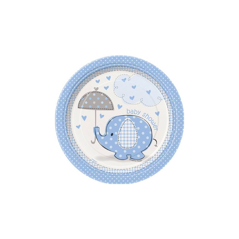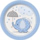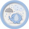 Piattini in carta del coordinato Elefantino Azzurro per feste Baby Shower. Abbina agli altri articoli del coordinato!
