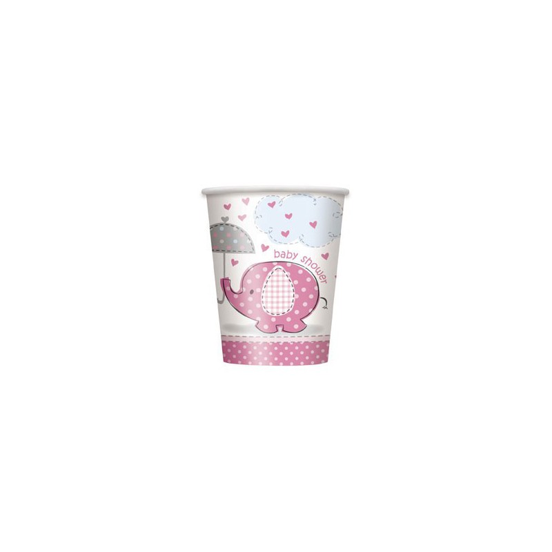 Bicchieri in carta del coordinato Elefantino Rosa per feste Baby Shower. Abbina agli altri articoli del coordinato!