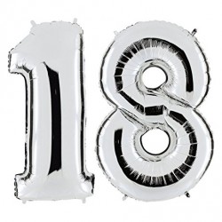 Set con 2 palloncini foil colore argento, numeri 1 e 8. Puoi facilmente creare un bouquet aggiungendo altri palloncini! Può essere gonfiato a elio o aria (non è inviato gonfiato). Abbinalo agli altri articoli consigliati per le feste 18 anni!