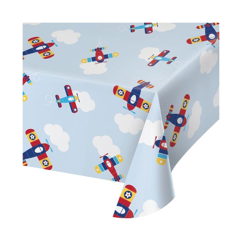 Tovaglia plastica decorata a tema aeroplano, stupenda per le feste dei bambini amanti degli aerei! Abbinala agli altri articoli per la tavola e decorazioni del coordinato Aeroplano per una festa perfetta!