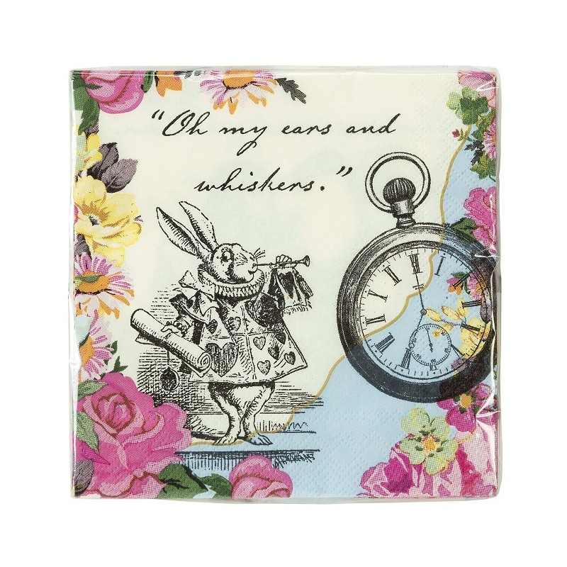 Tovaglioli in carta a tema Alice nel Paese delle Meraviglie, in un mix di 2 design, con il Coniglio bianco e Alice, entrambi adornati da un vivace bordo floreale. Abbinali agli altri articoli del coordinato e decorazioni per creare la tua festa a tema Alice nel Paese delle Meraviglie!